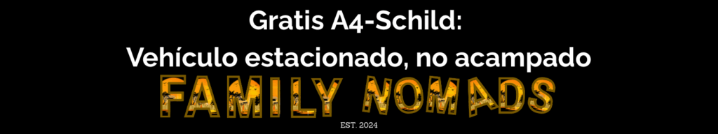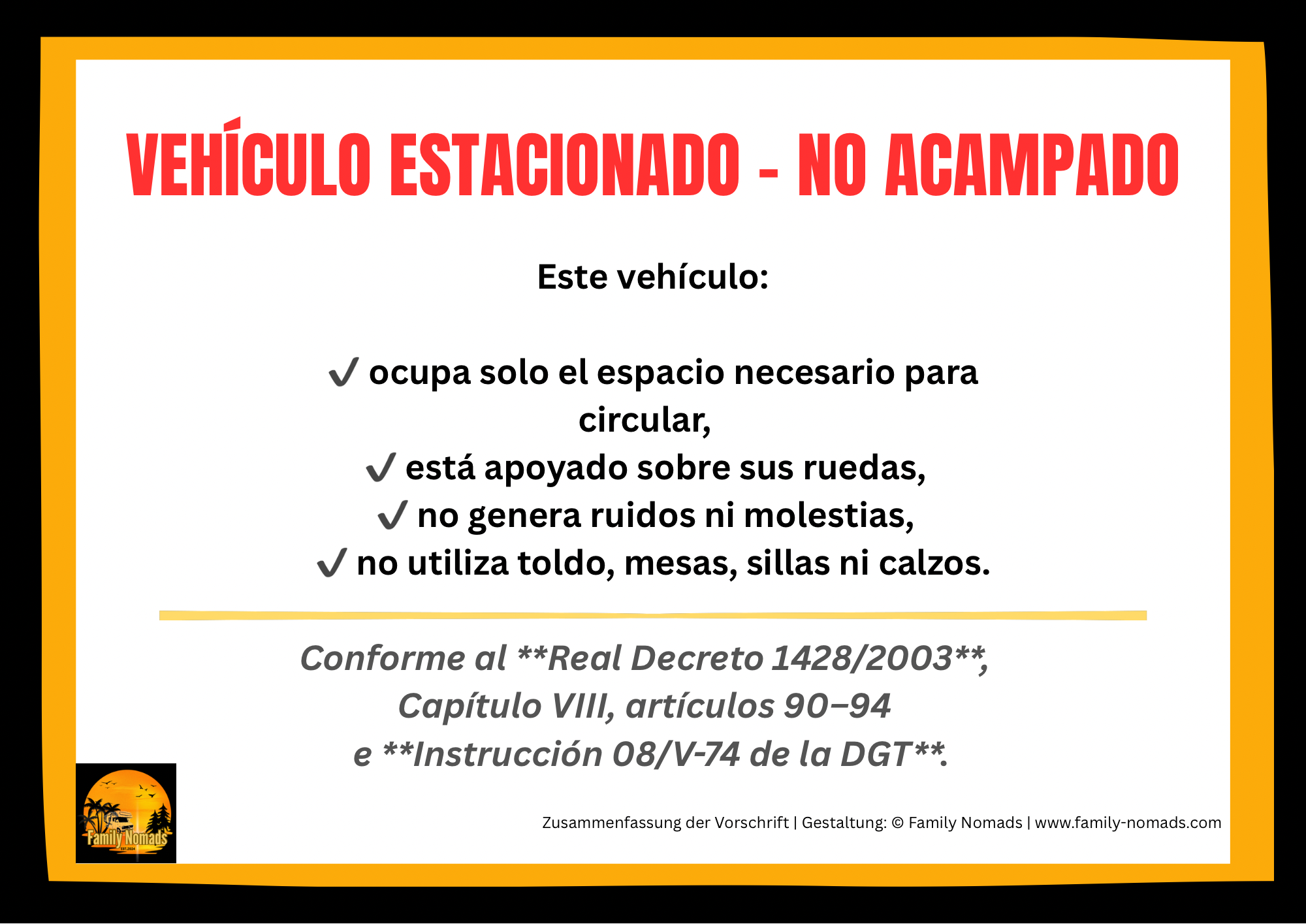 Perfekt für Spanien: Dezent zeigen, dass ihr nur parkt – nicht campt. Druckfertig als A4‑PDF